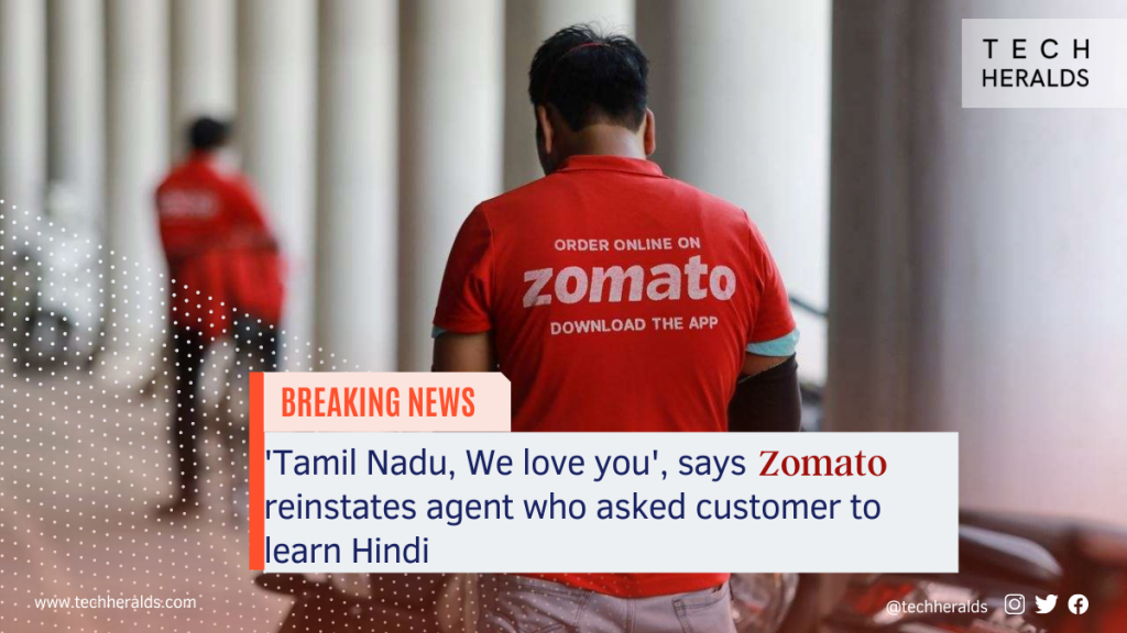 ‘Tamil Nadu, We love you’, says Zomato reinstates agent who asked customer to learn Hindi
